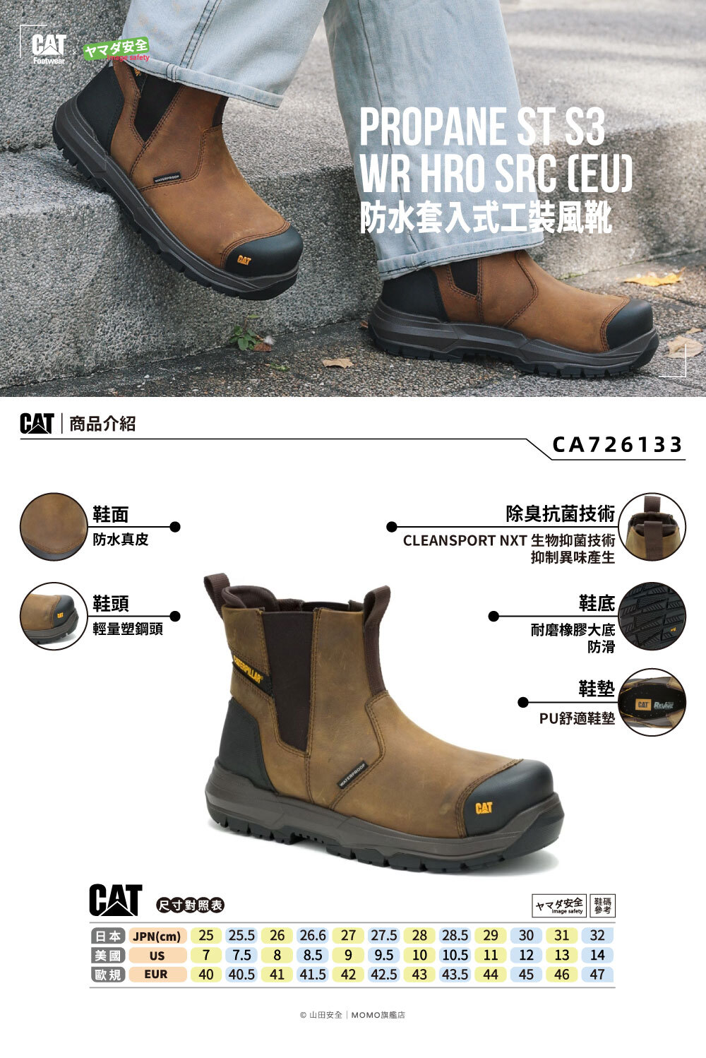 CAT CA726133 防水套入式工裝風靴 沉穩褐