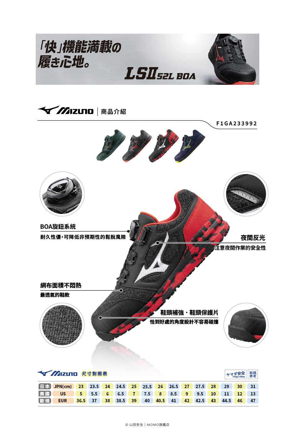 BOA快速旋鈕,免綁鞋帶、不怕鬆脫,迅速上工。