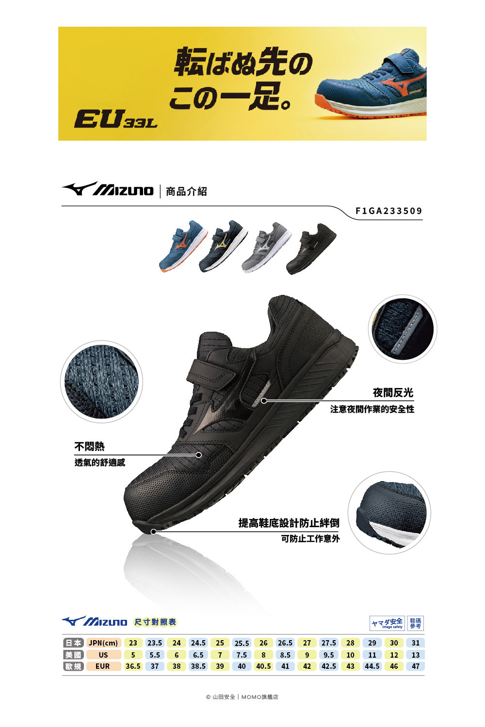 PRIME FIT EU31L美津濃防護鞋「黑色」F1GA233509