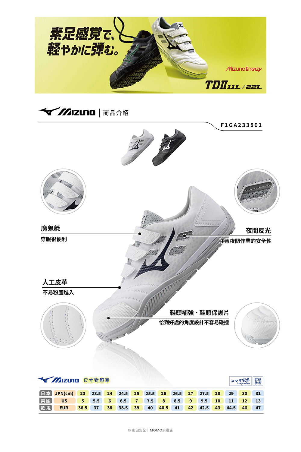 腳跟內藏式柔軟回彈性佳的MIZUNO ENERZY素材。
