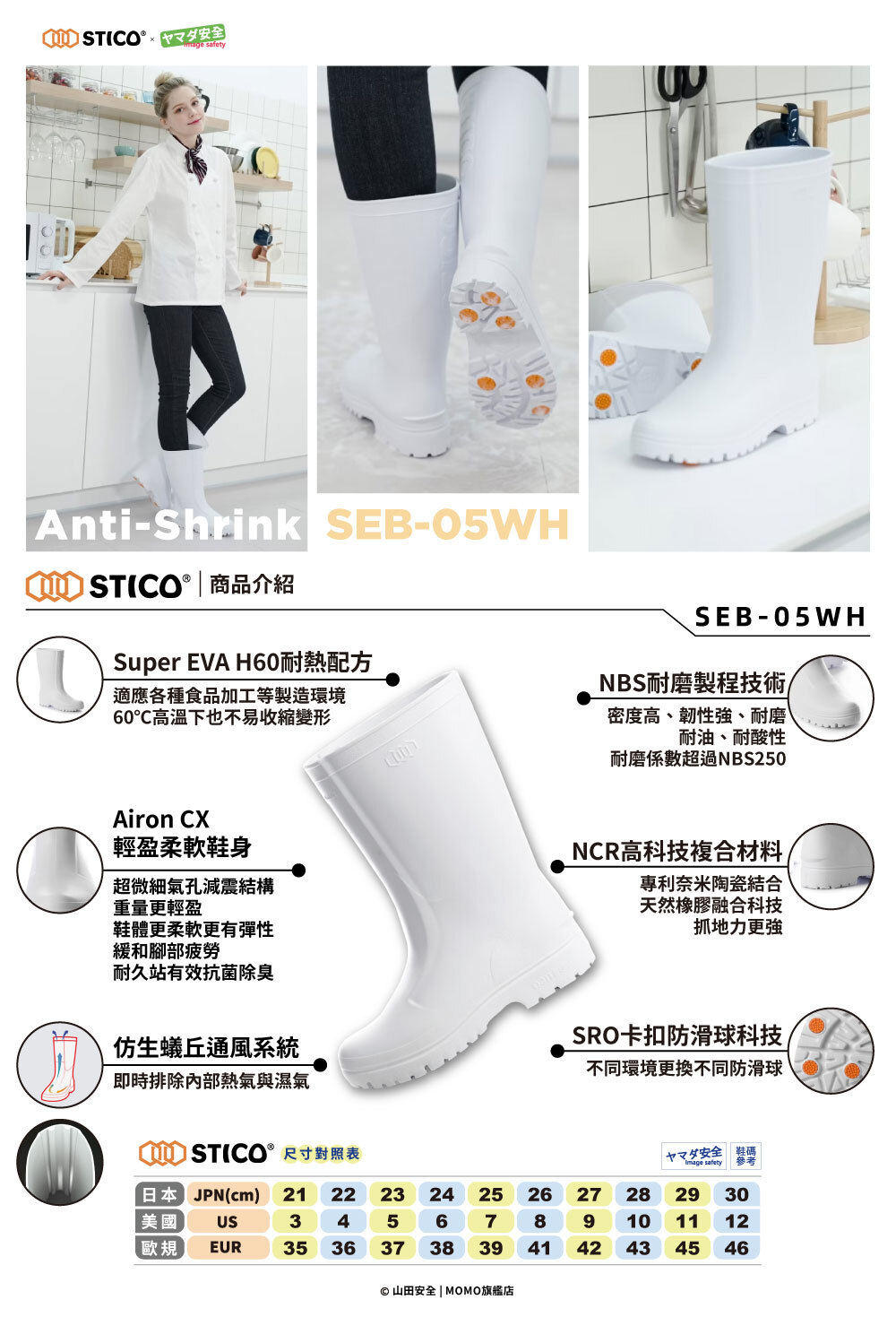 ●符合防滑規定,食品工廠指定使用專業工作鞋